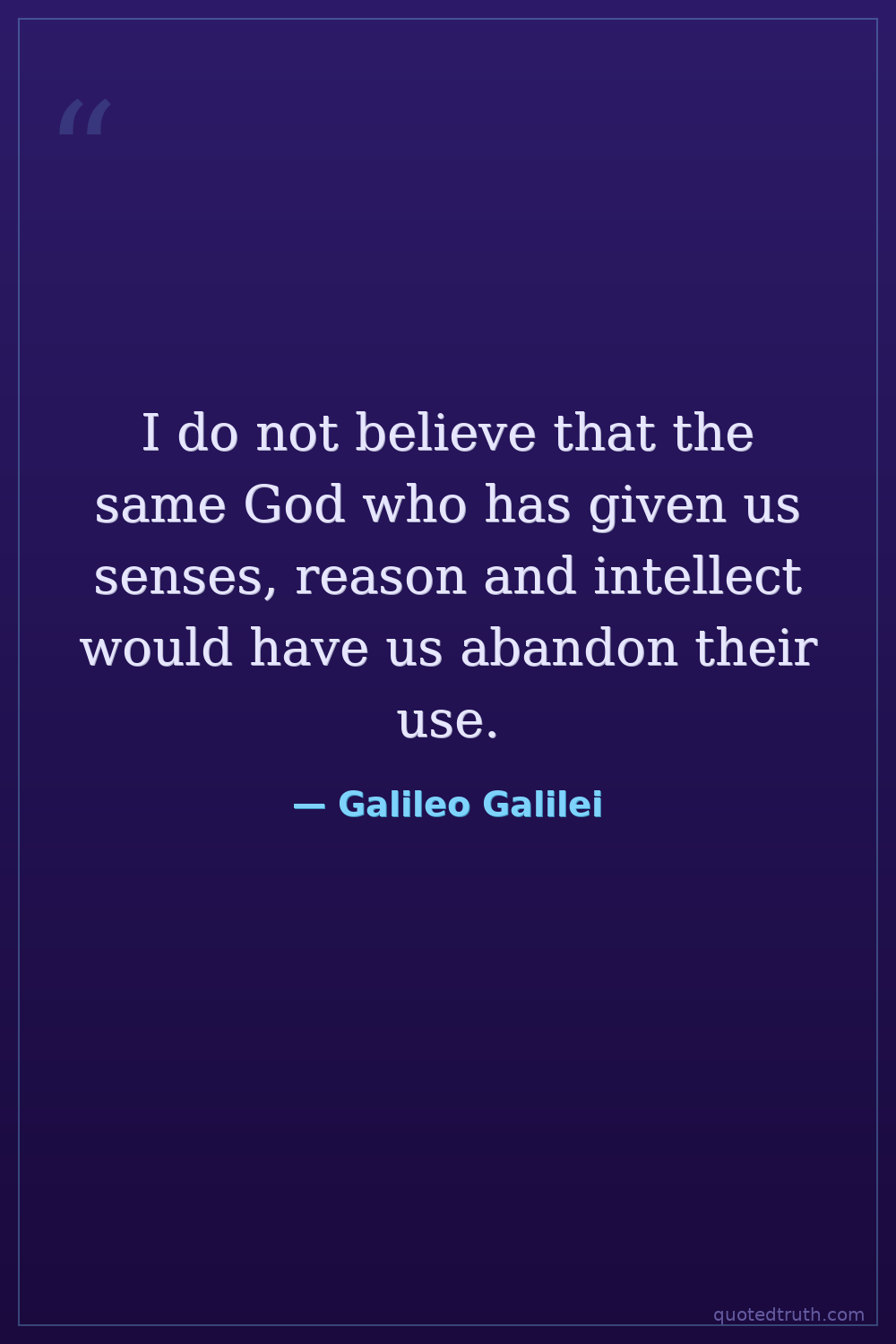 I do not believe that the same God who has given us senses, reason and intellect would have us abandon their use.