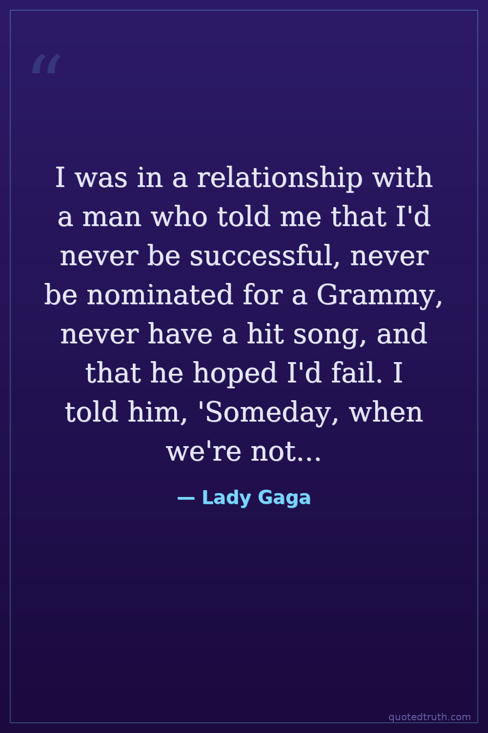 I was in a relationship with a man who told me that I'd never be successful, never be nominated for a Grammy, never have a hit song, and that he hoped I'd fail. I told him, 'Someday, when we're not together, you're not going to be able to order a cup of coffee at a fucking deli without hearing or seeing me.'