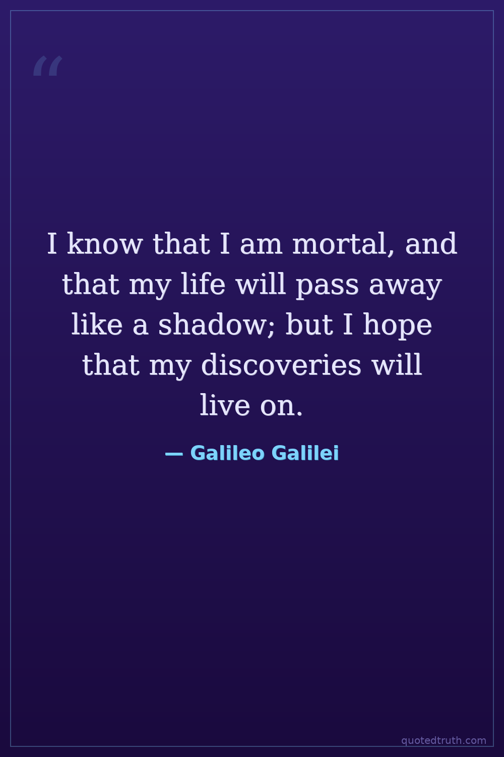 I know that I am mortal, and that my life will pass away like a shadow; but I hope that my discoveries will live on.