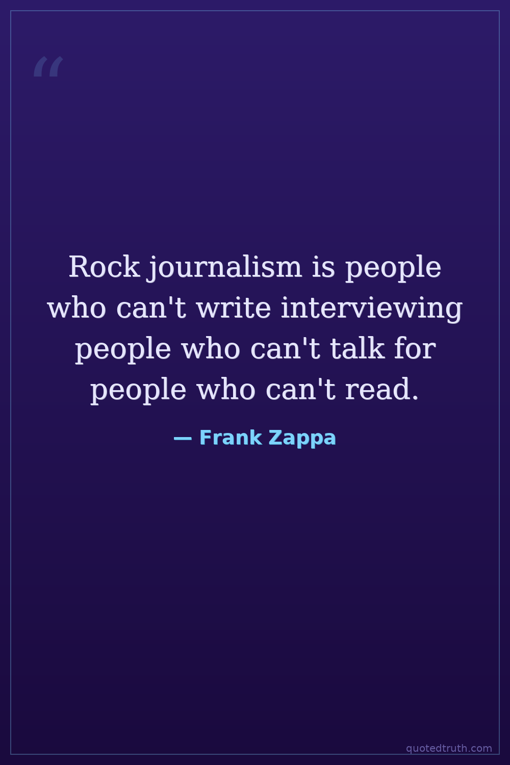 Rock journalism is people who can't write interviewing people who can't talk for people who can't read.