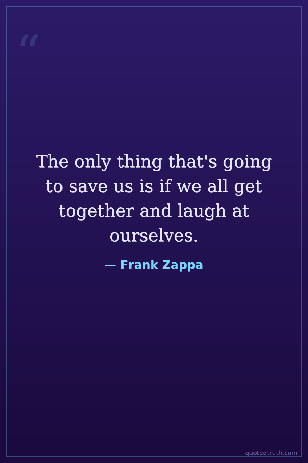 The only thing that's going to save us is if we all get together and laugh at ourselves.