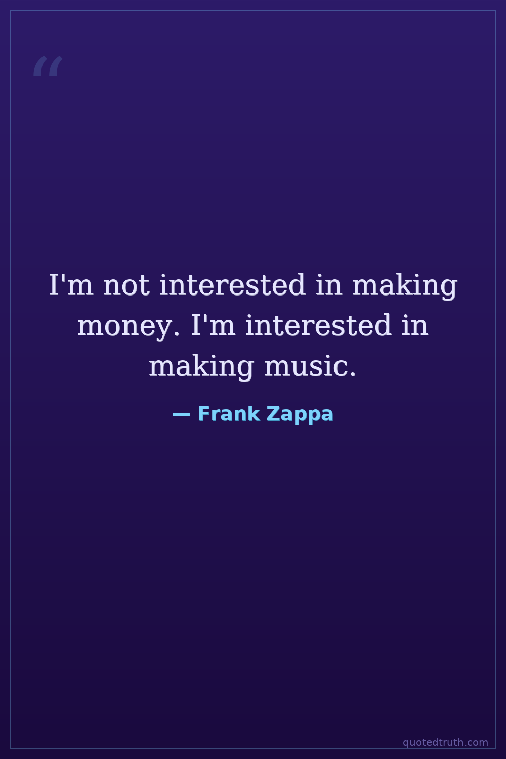 I'm not interested in making money. I'm interested in making music.