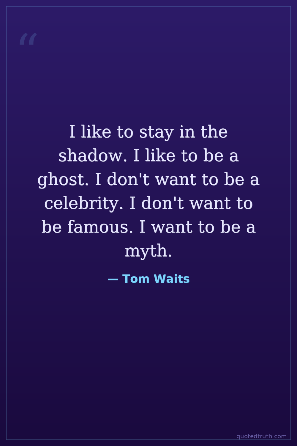 I like to stay in the shadow. I like to be a ghost. I don't want to be a celebrity. I don't want to be famous. I want to be a myth.