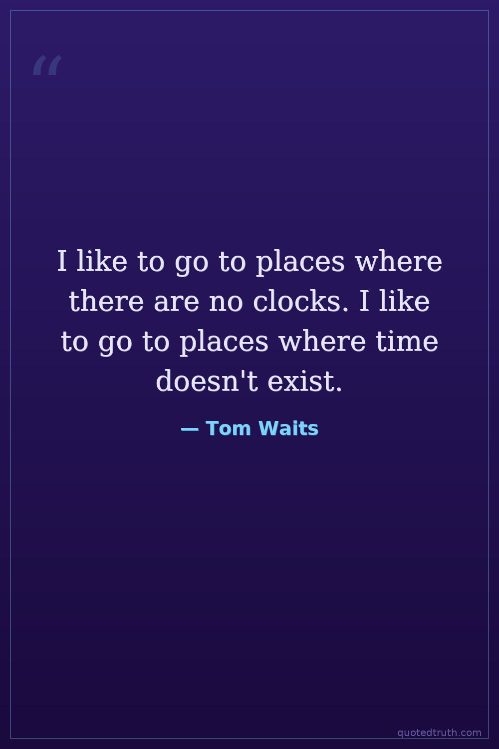 I like to go to places where there are no clocks. I like to go to places where time doesn't exist.