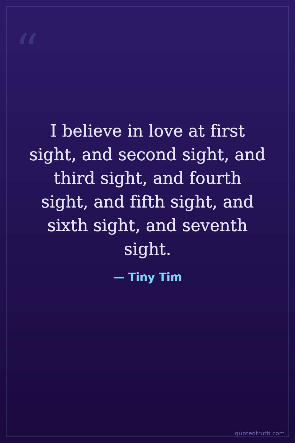 I believe in love at first sight, and second sight, and third sight, and fourth sight, and fifth sight, and sixth sight, and seventh sight.