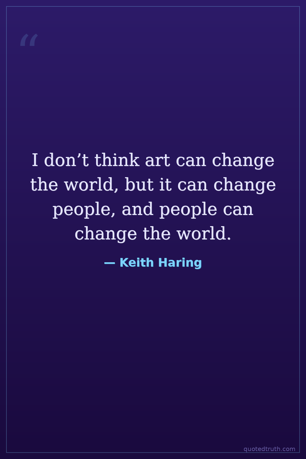 I don’t think art can change the world, but it can change people, and people can change the world.
