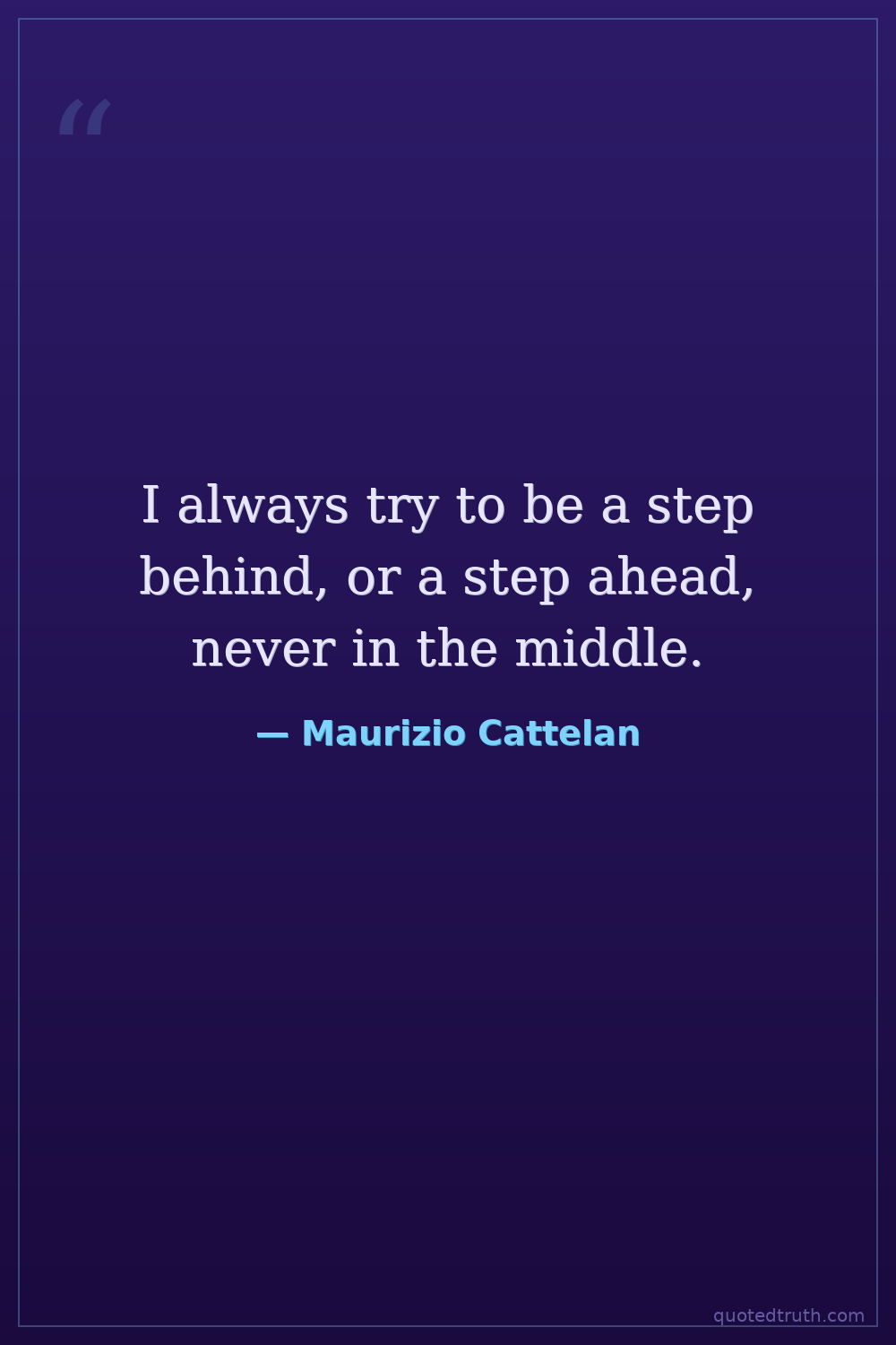 I always try to be a step behind, or a step ahead, never in the middle.