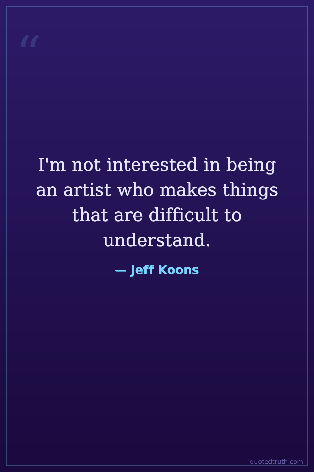 I'm not interested in being an artist who makes things that are difficult to understand.