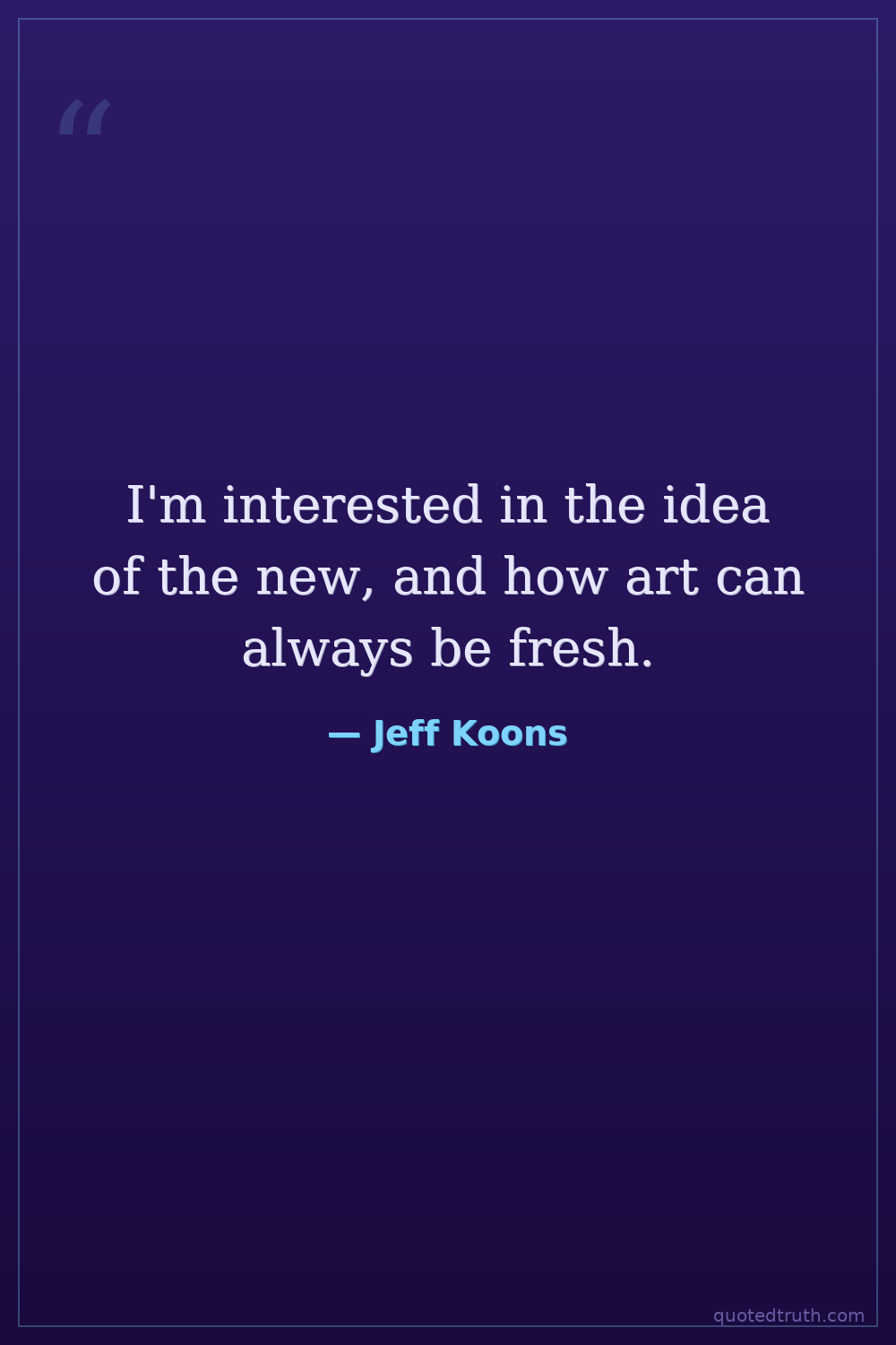 I'm interested in the idea of the new, and how art can always be fresh.