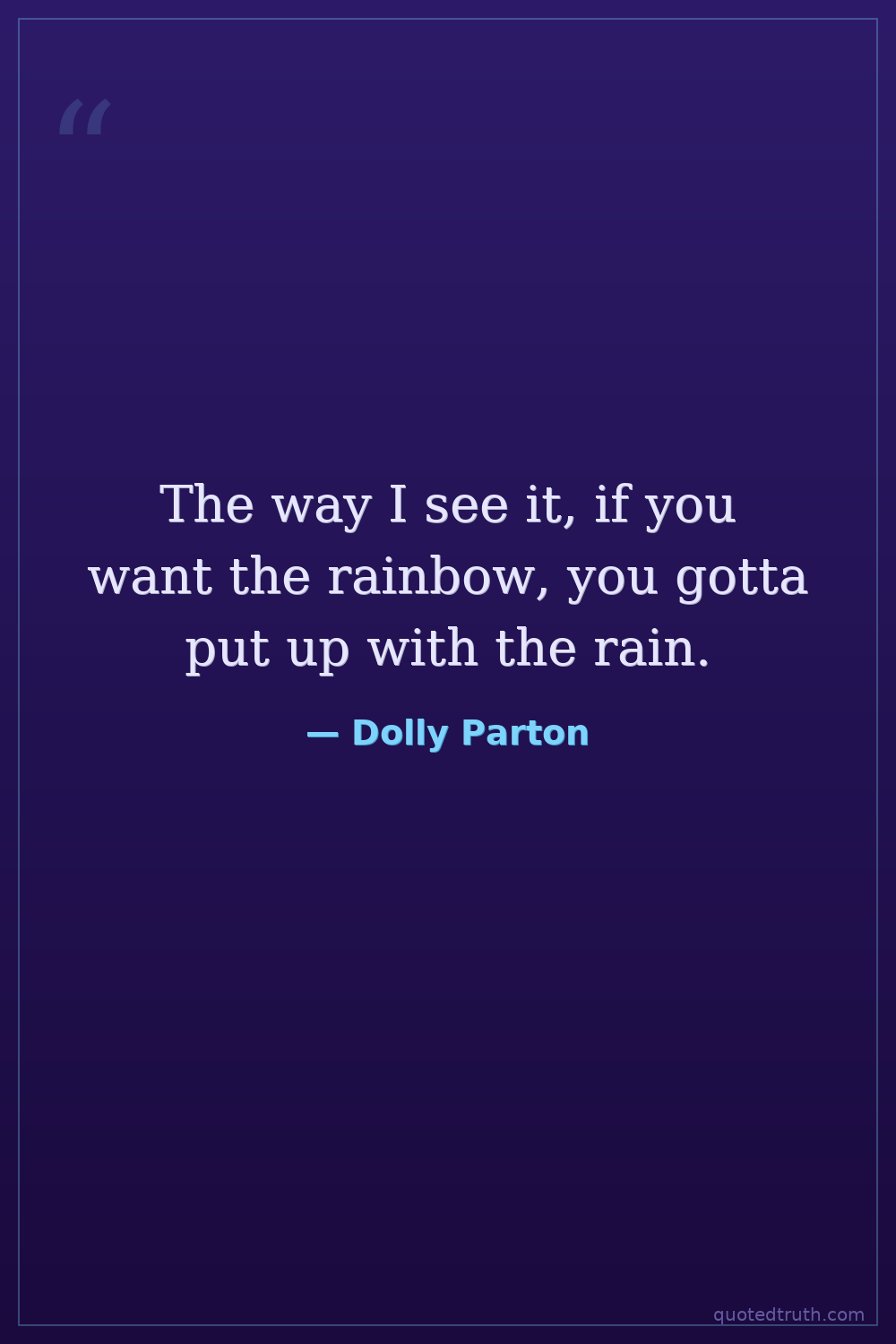 The way I see it, if you want the rainbow, you gotta put up with the rain.