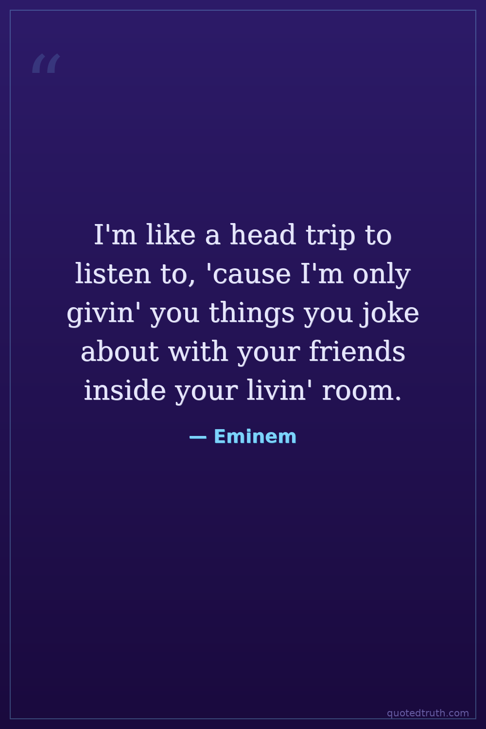 I'm like a head trip to listen to, 'cause I'm only givin' you things you joke about with your friends inside your livin' room.
