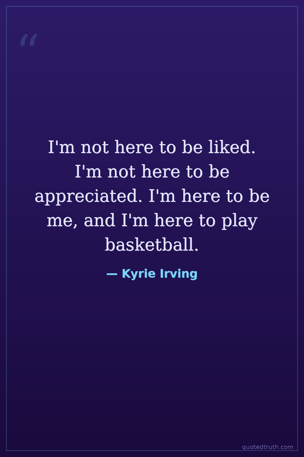 I'm not here to be liked. I'm not here to be appreciated. I'm here to be me, and I'm here to play basketball.