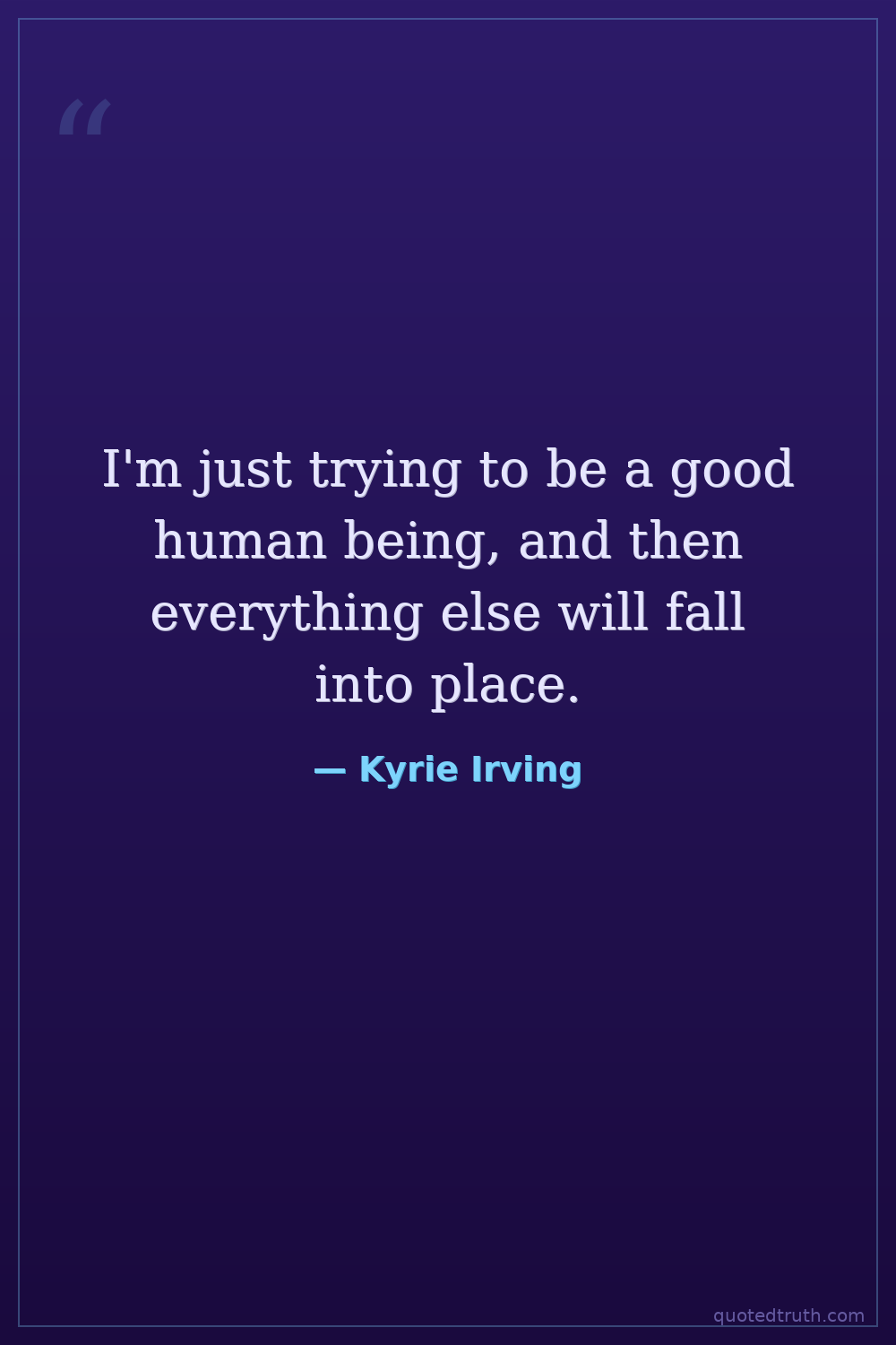 I'm just trying to be a good human being, and then everything else will fall into place.