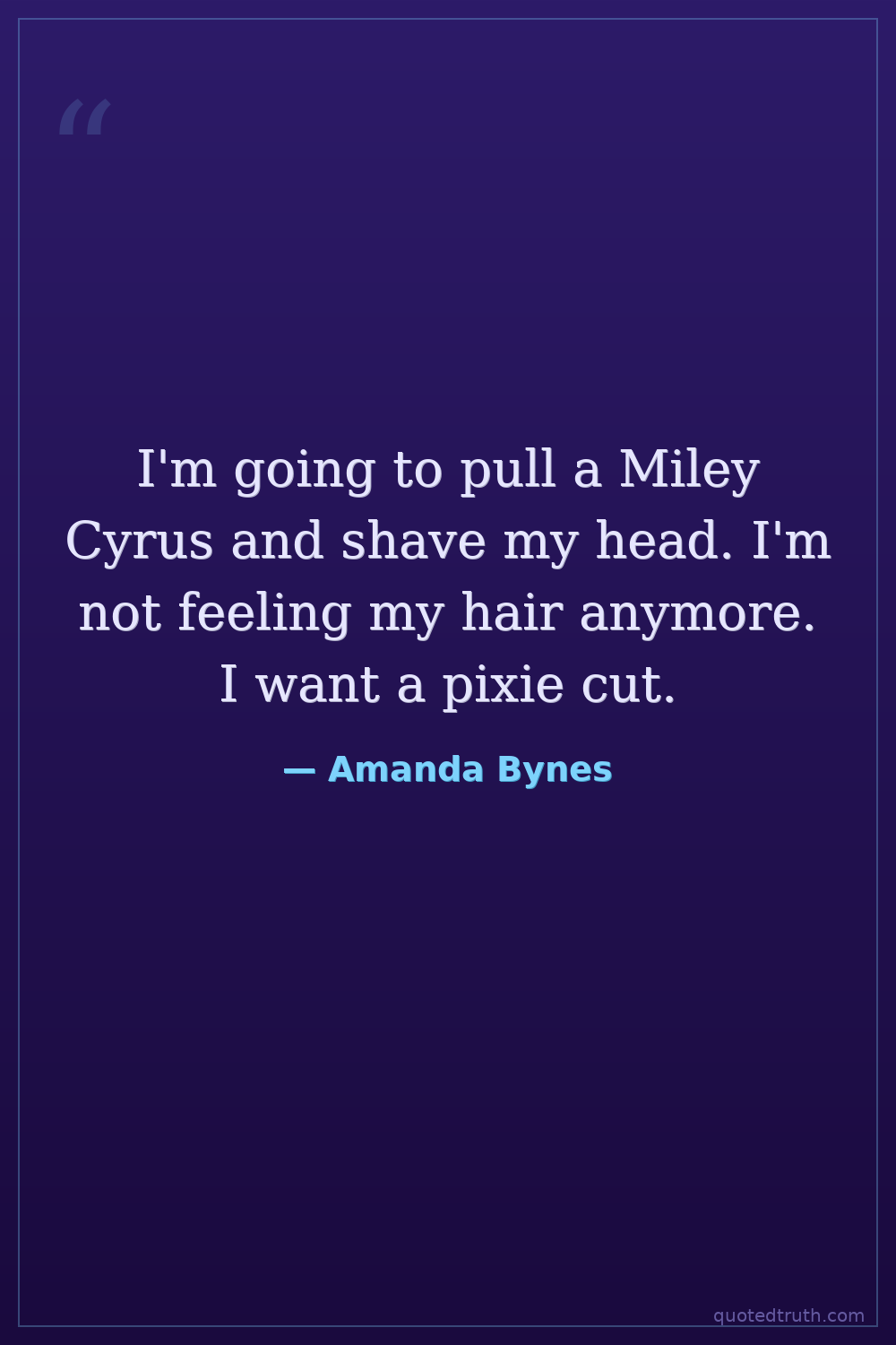 I'm going to pull a Miley Cyrus and shave my head. I'm not feeling my hair anymore. I want a pixie cut.