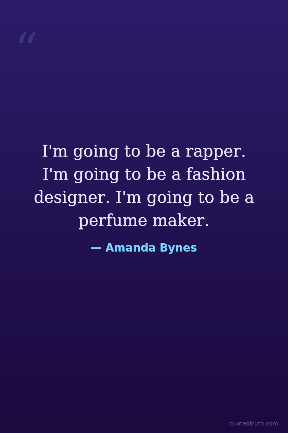 I'm going to be a rapper. I'm going to be a fashion designer. I'm going to be a perfume maker.