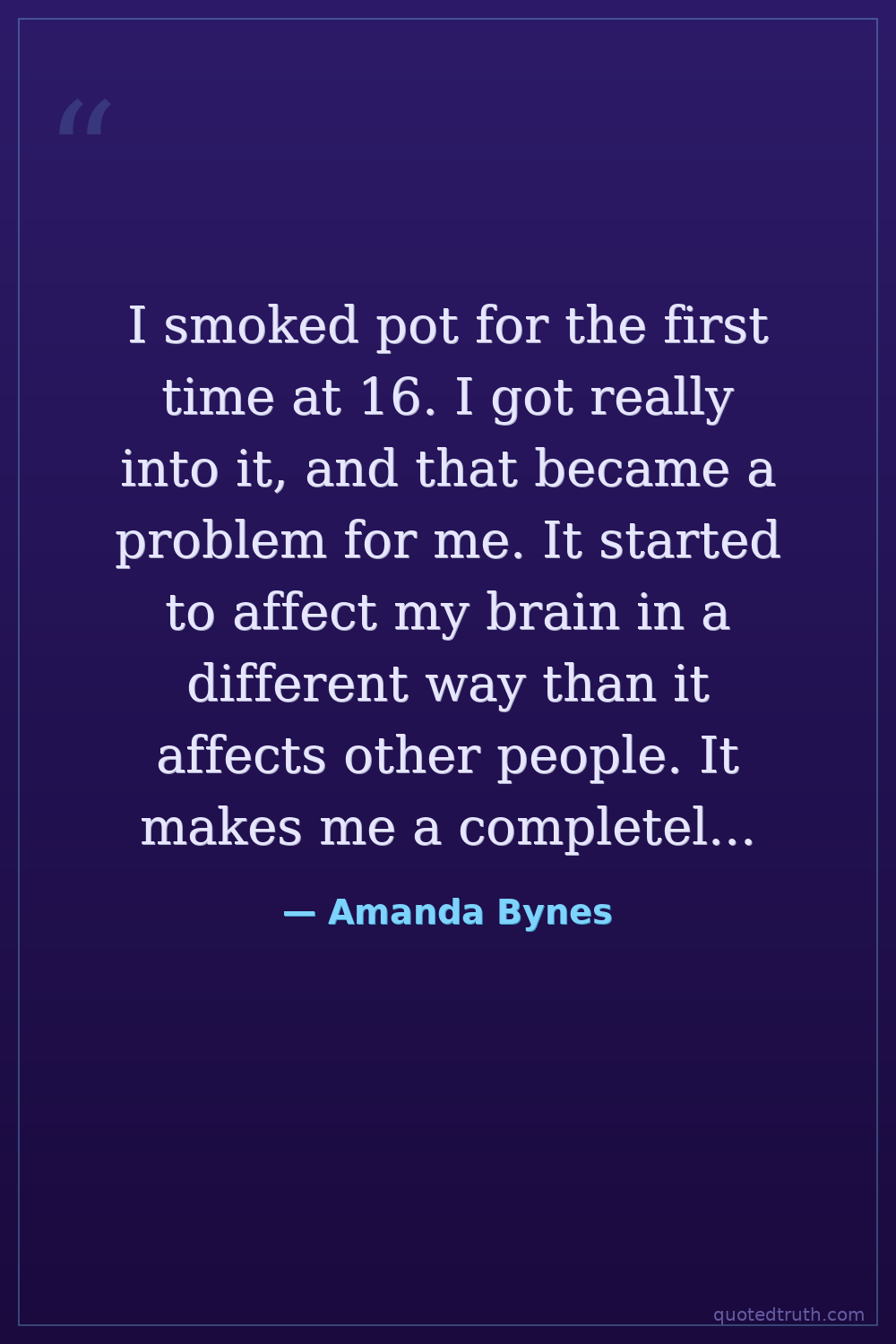 I smoked pot for the first time at 16. I got really into it, and that became a problem for me. It started to affect my brain in a different way than it affects other people. It makes me a completely different person. I was a drug addict.