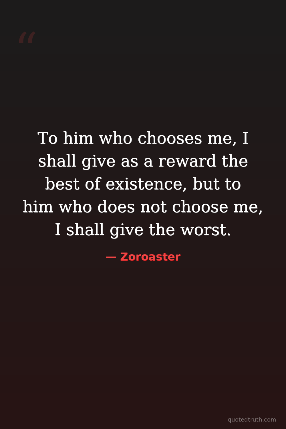 To him who chooses me, I shall give as a reward the best of existence, but to him who does not choose me, I shall give the worst.