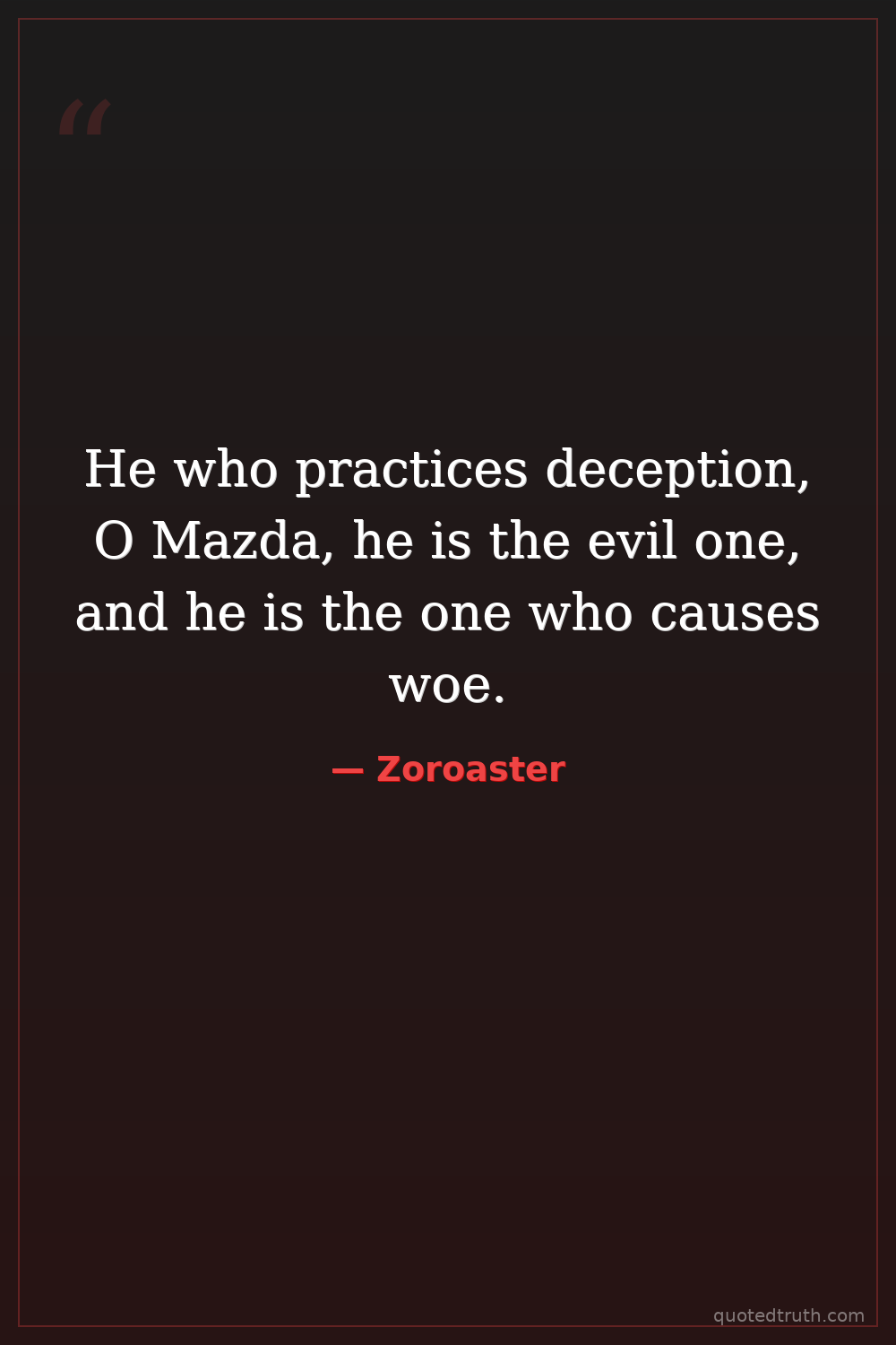 He who practices deception, O Mazda, he is the evil one, and he is the one who causes woe.