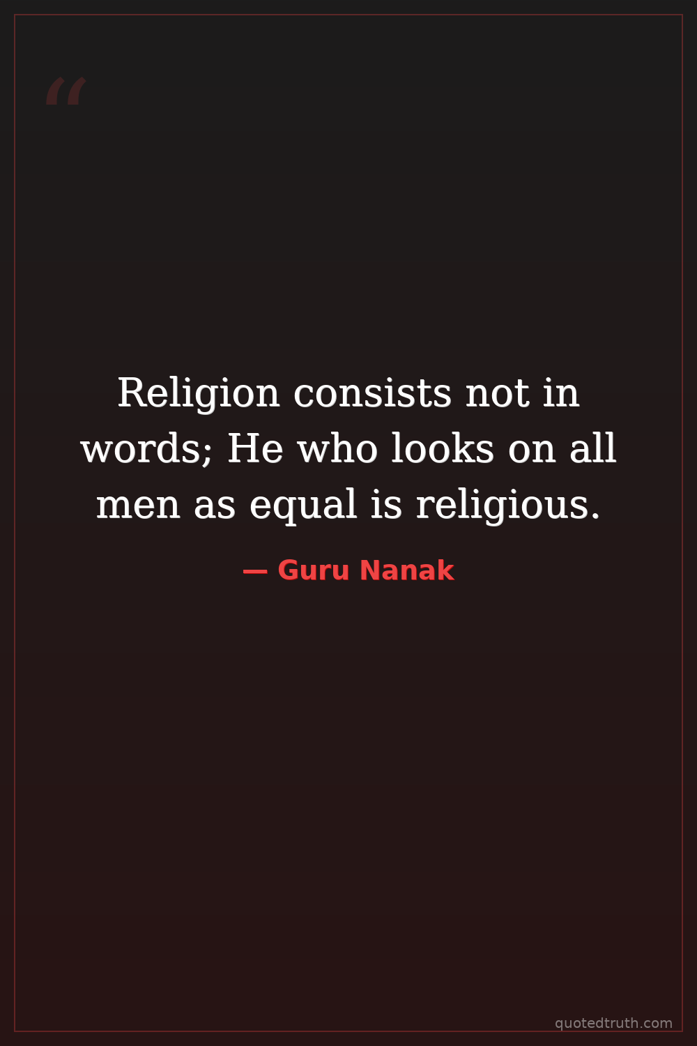 Religion consists not in words; He who looks on all men as equal is religious.