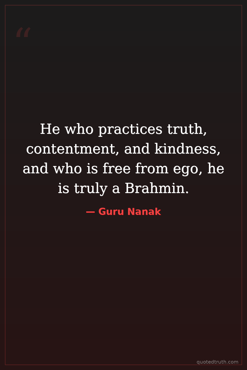 He who practices truth, contentment, and kindness, and who is free from ego, he is truly a Brahmin.
