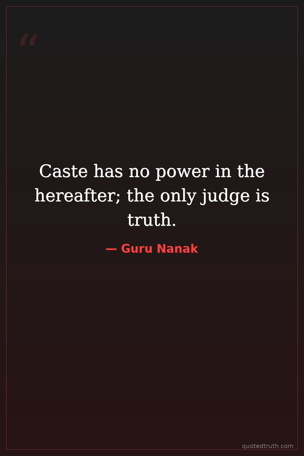 Caste has no power in the hereafter; the only judge is truth.