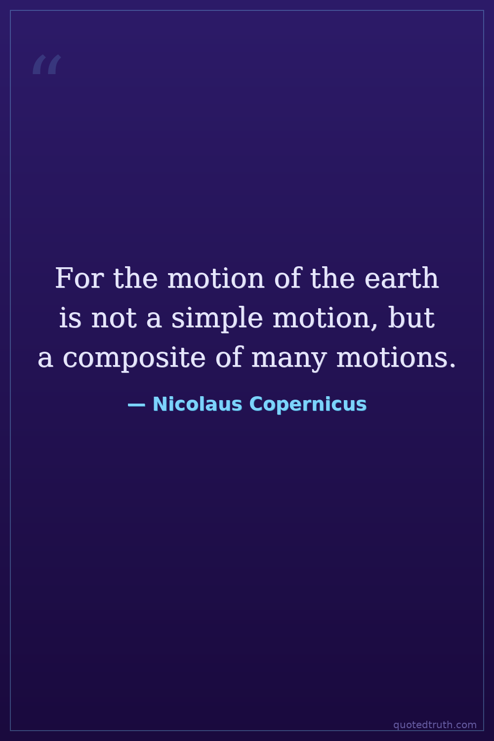 "Therefore, if the Earth moved, it would necessarily move with a triple motion: one, the diurnal rotation on its own axis; another, the annual revolution around the Sun; and a third, the motion of its …"