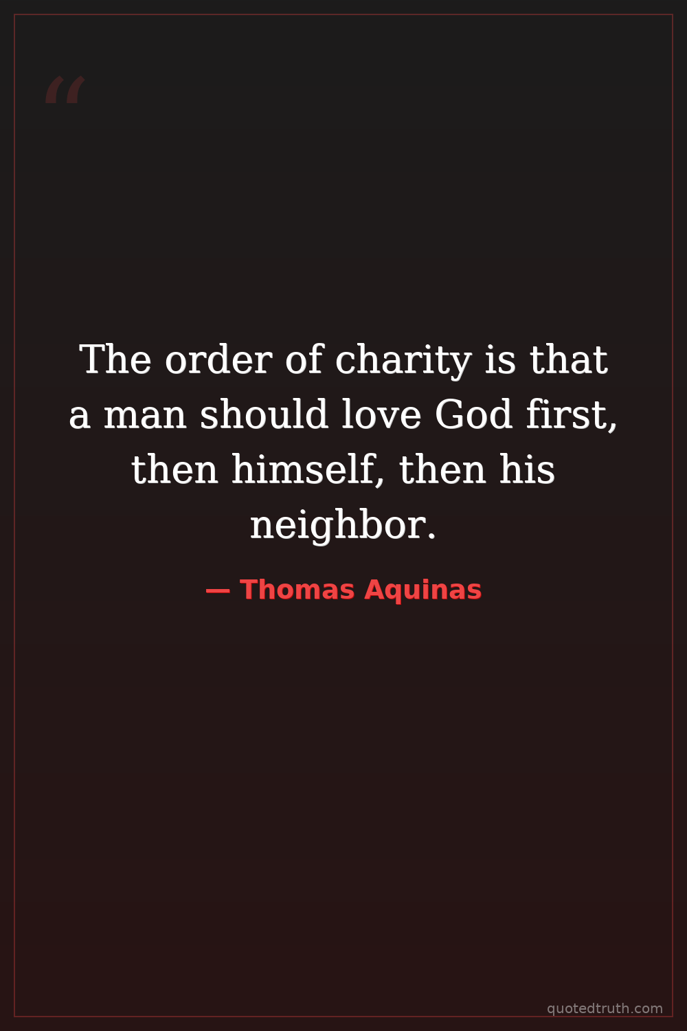 The order of charity is that a man should love God first, then himself, then his neighbor.