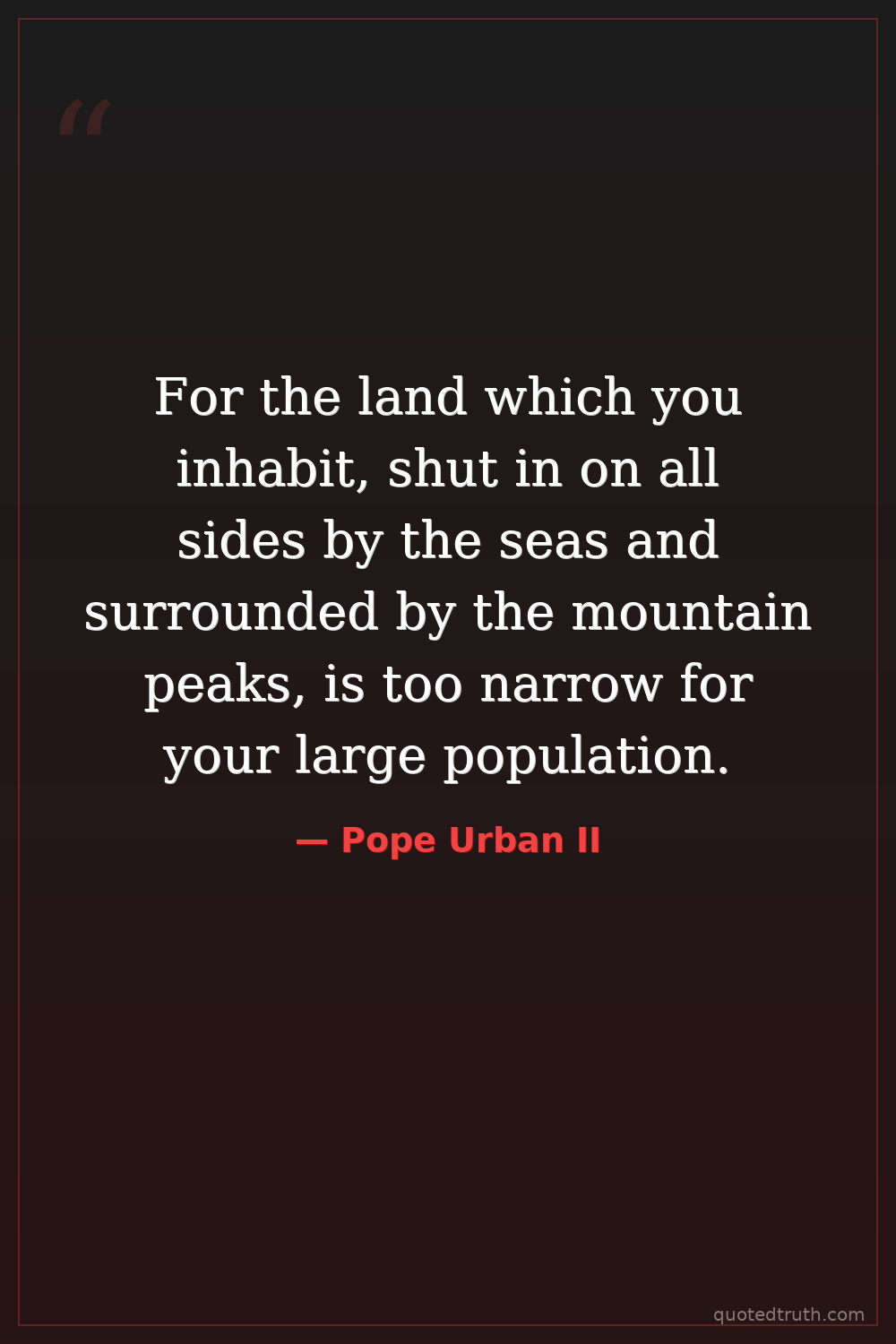 For the land which you inhabit, shut in on all sides by the seas and surrounded by the mountain peaks, is too narrow for your large population.