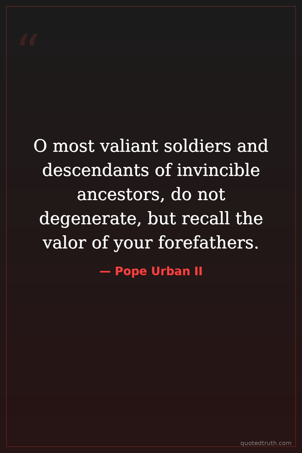 O most valiant soldiers and descendants of invincible ancestors, do not degenerate, but recall the valor of your forefathers.