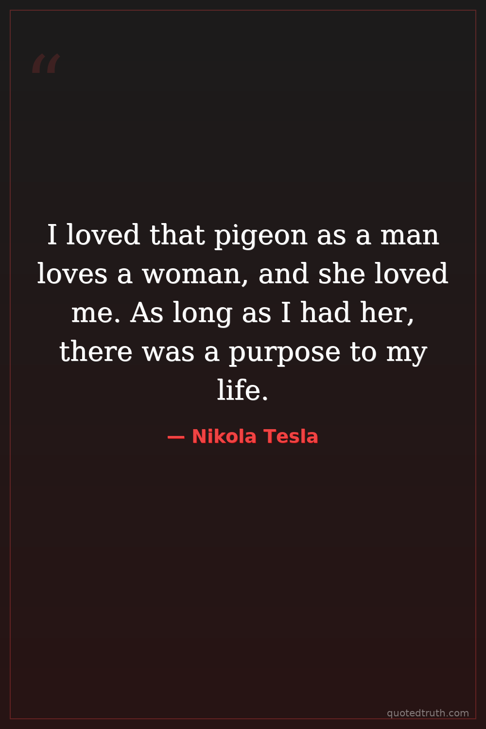 I loved that pigeon as a man loves a woman, and she loved me. As long as I had her, there was a purpose to my life.