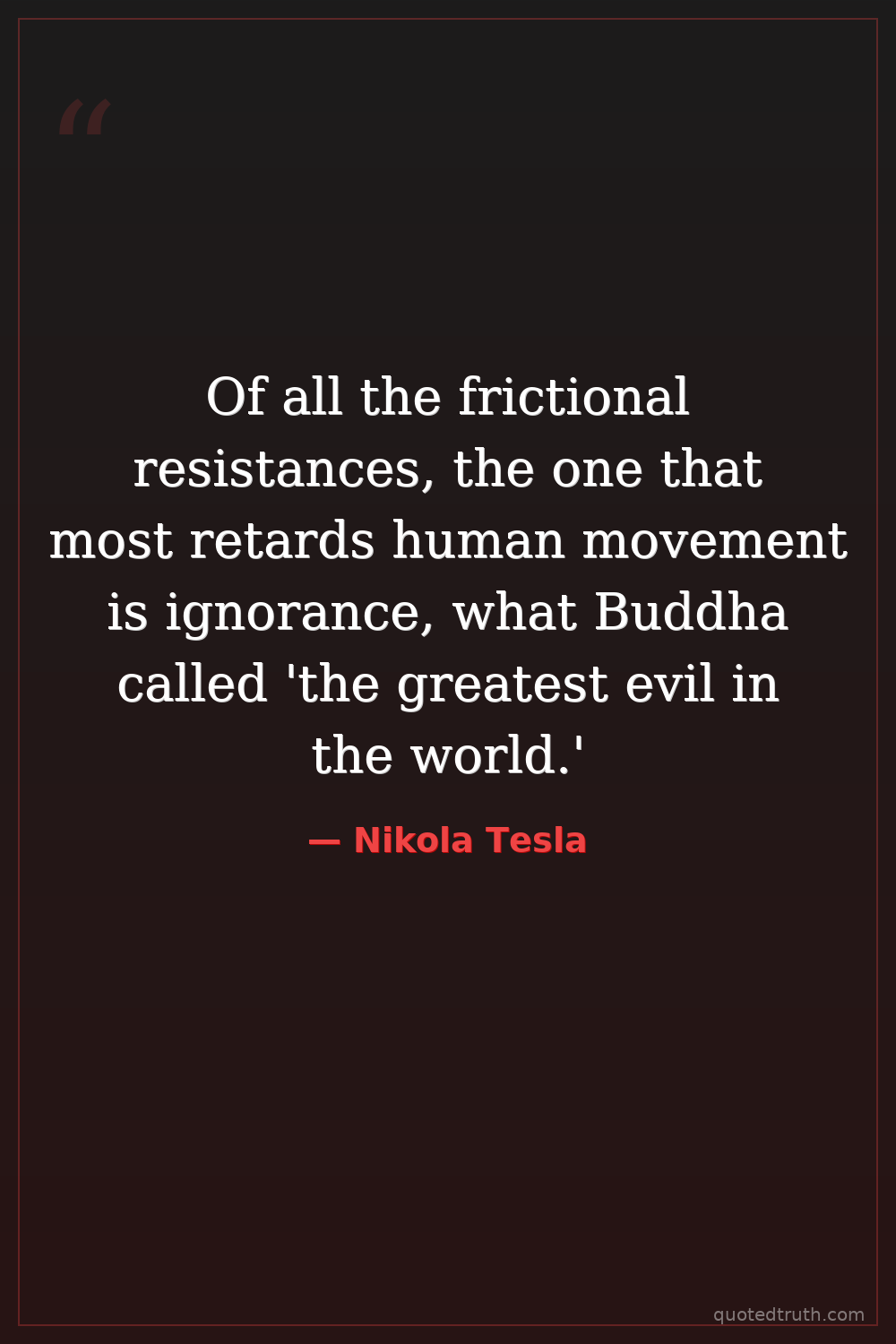 Of all the frictional resistances, the one that most retards human movement is ignorance, what Buddha called 'the greatest evil in the world.'