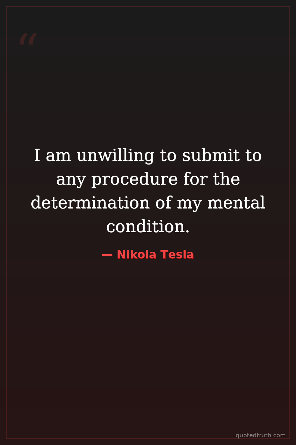 I am unwilling to submit to any procedure for the determination of my mental condition.