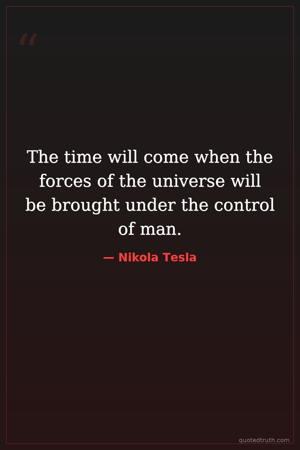 The time will come when the forces of the universe will be brought under the control of man.