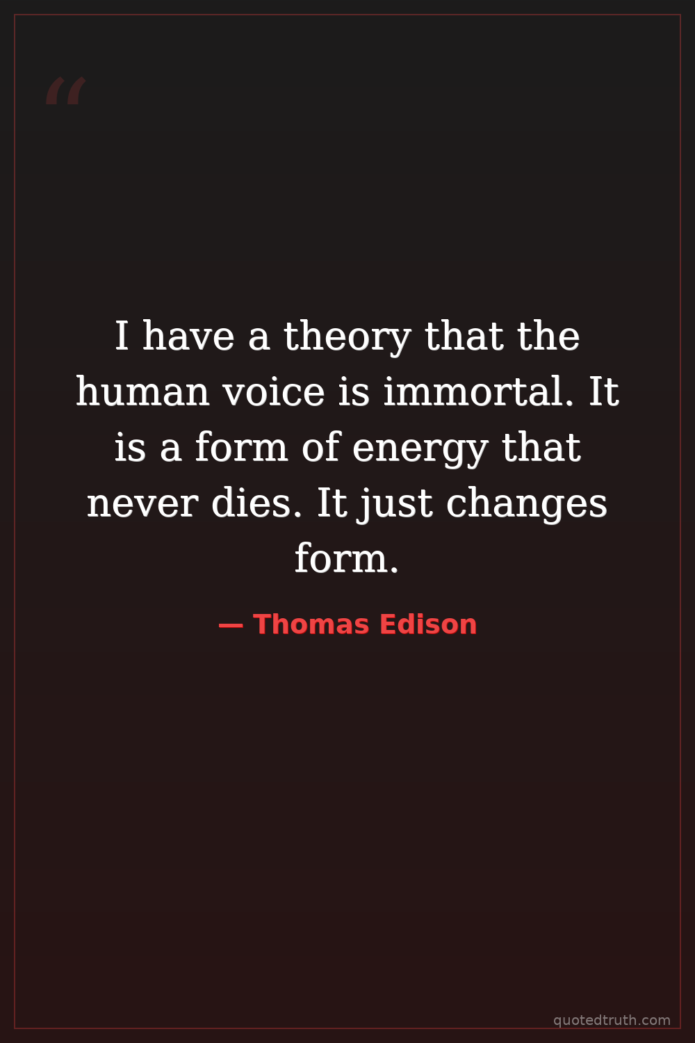 I have a theory that the human voice is immortal. It is a form of energy that never dies. It just changes form.
