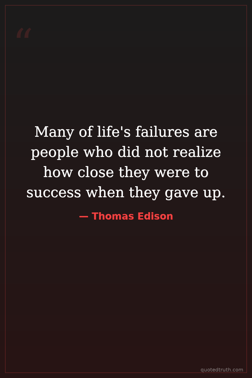 Many of life's failures are people who did not realize how close they were to success when they gave up.