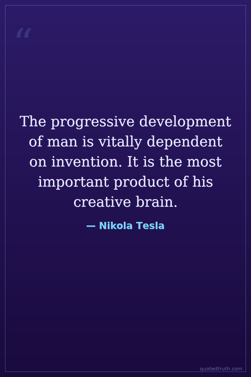 The progressive development of man is vitally dependent on invention. It is the most important product of his creative brain.
