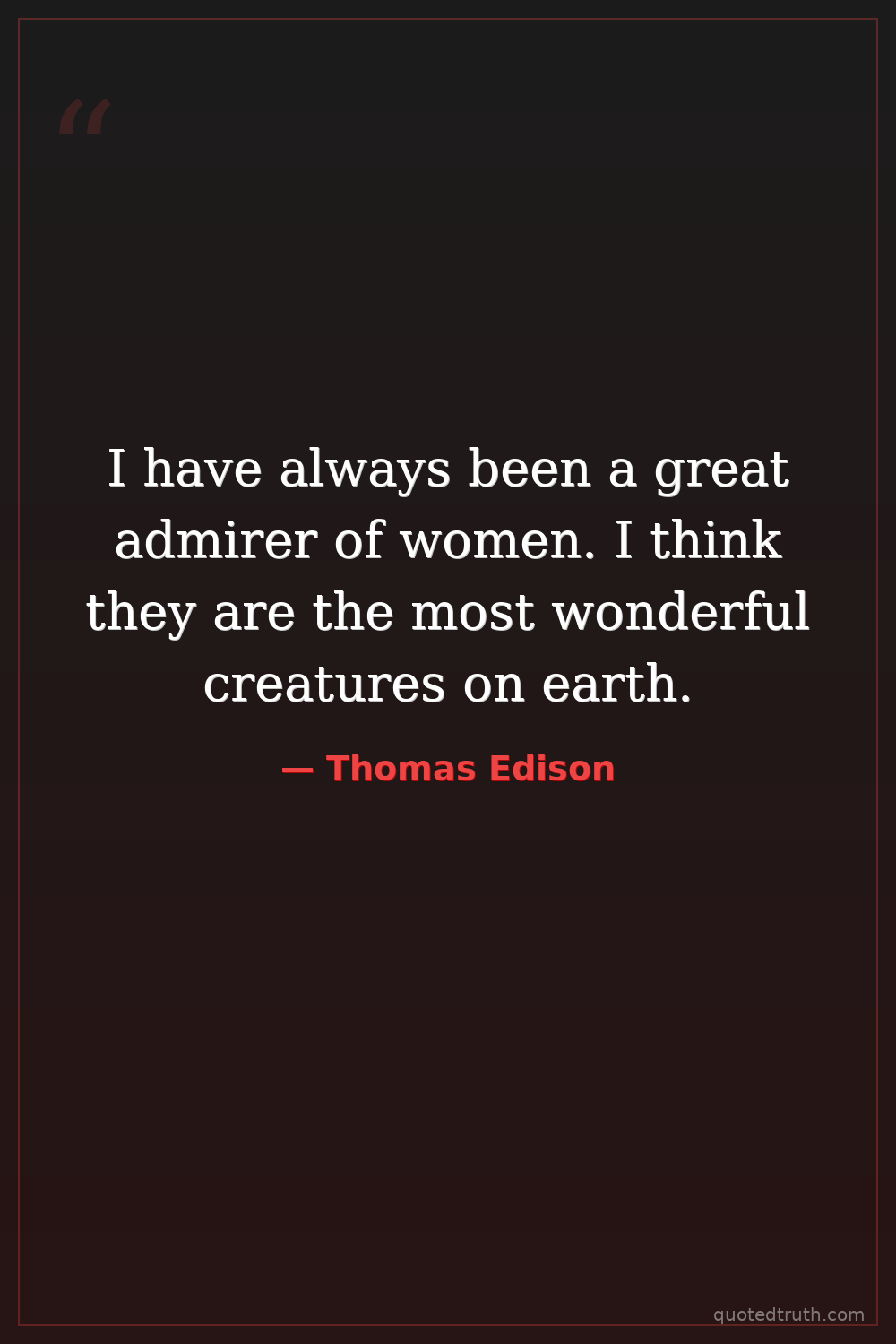 I have always been a great admirer of women. I think they are the most wonderful creatures on earth.