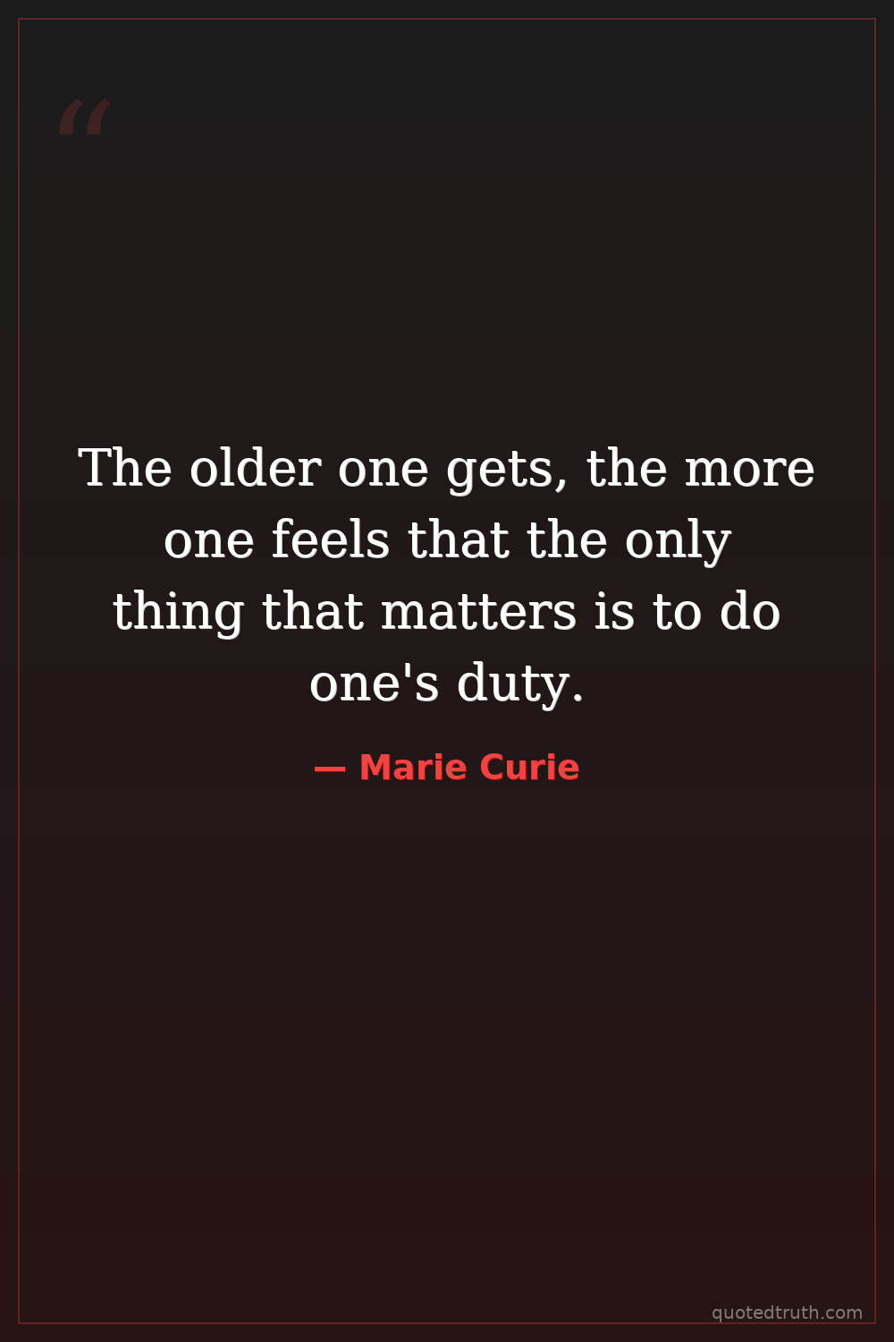 The older one gets, the more one feels that the only thing that matters is to do one's duty.