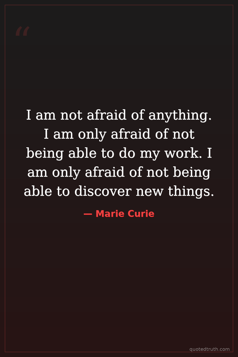 I am not afraid of anything. I am only afraid of not being able to do my work. I am only afraid of not being able to discover new things.
