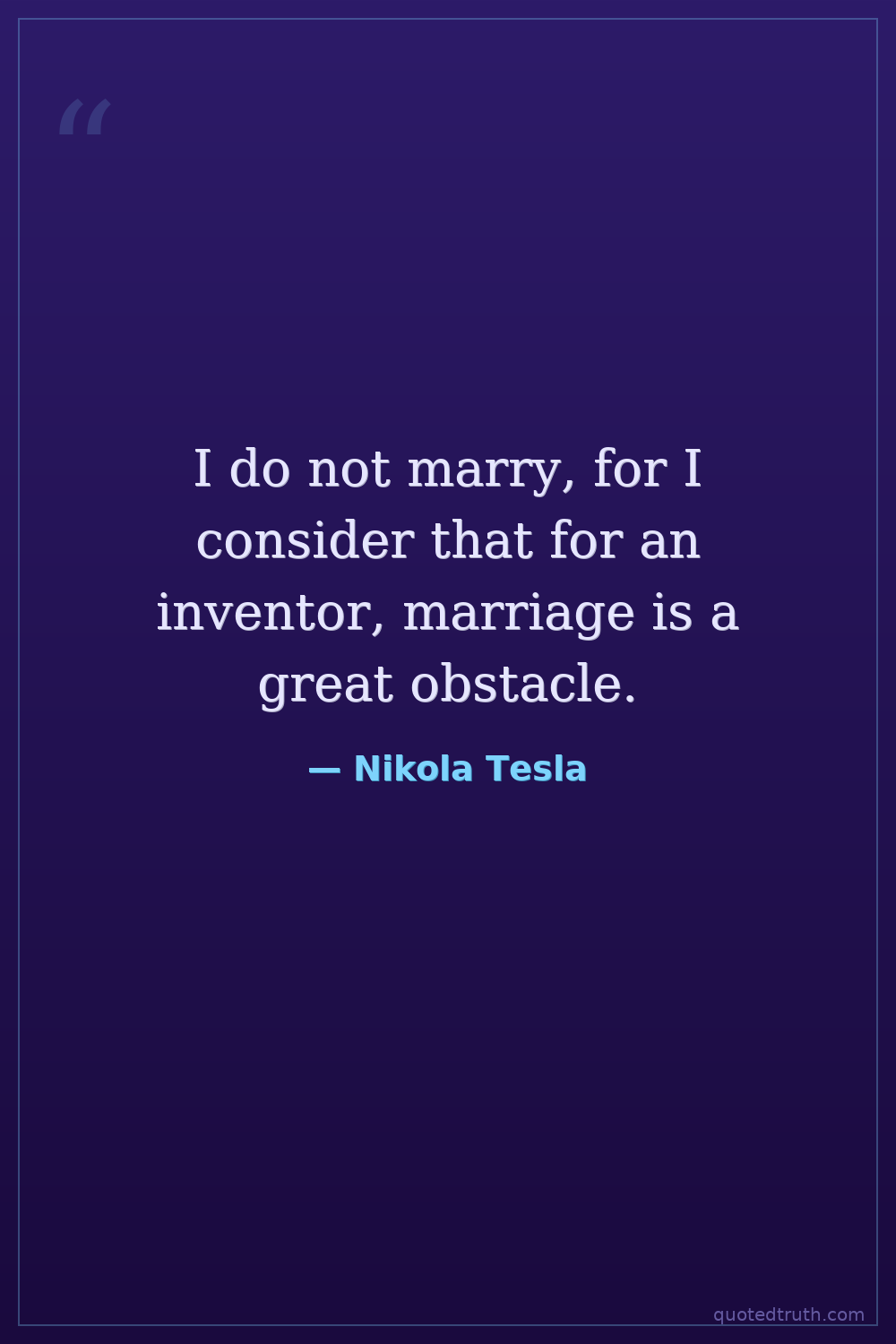 I do not marry, for I consider that for an inventor, marriage is a great obstacle.
