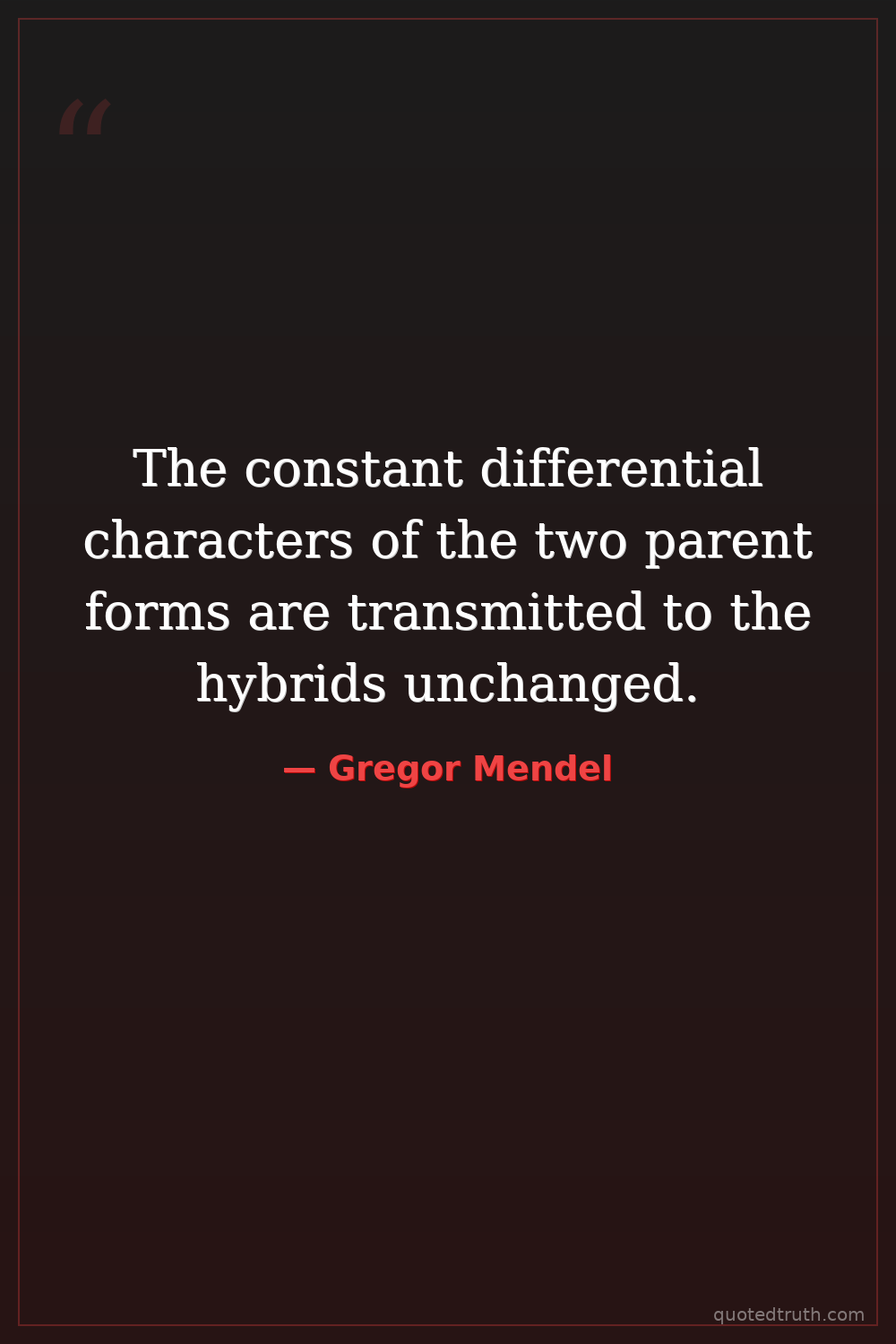 Shocking"The characters of the two parental forms are transmitted to the hybrid in an unchanged form."