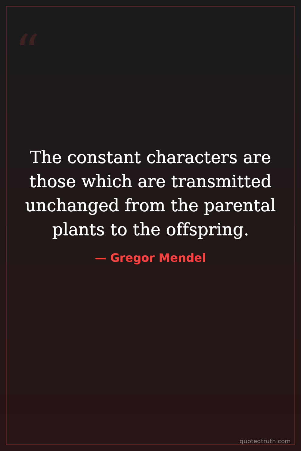 "The constant characters which appear in the various generations of a hybrid are those which are transmitted unchanged from the parental plants."
