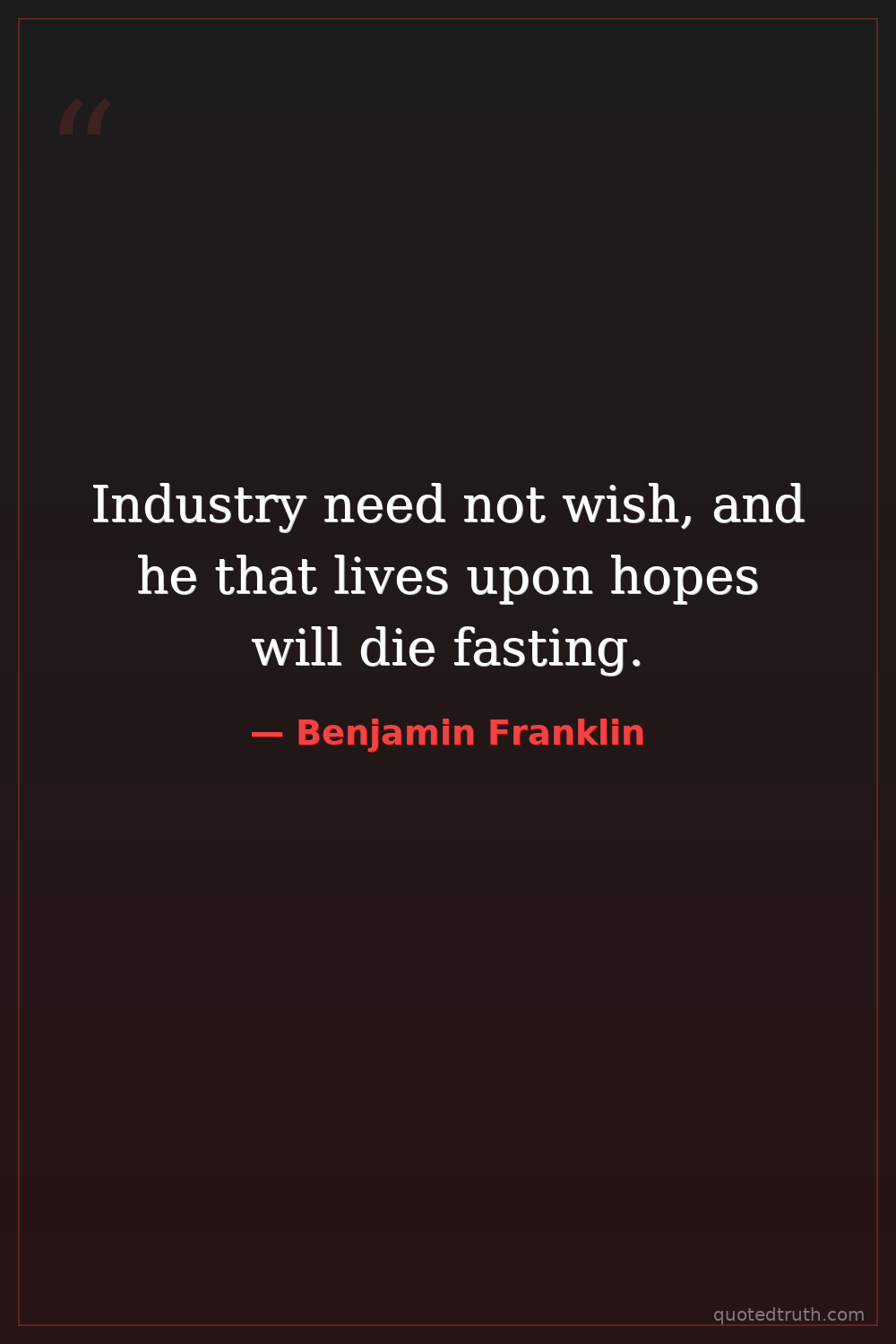 Industry need not wish, and he that lives upon hopes will die fasting.