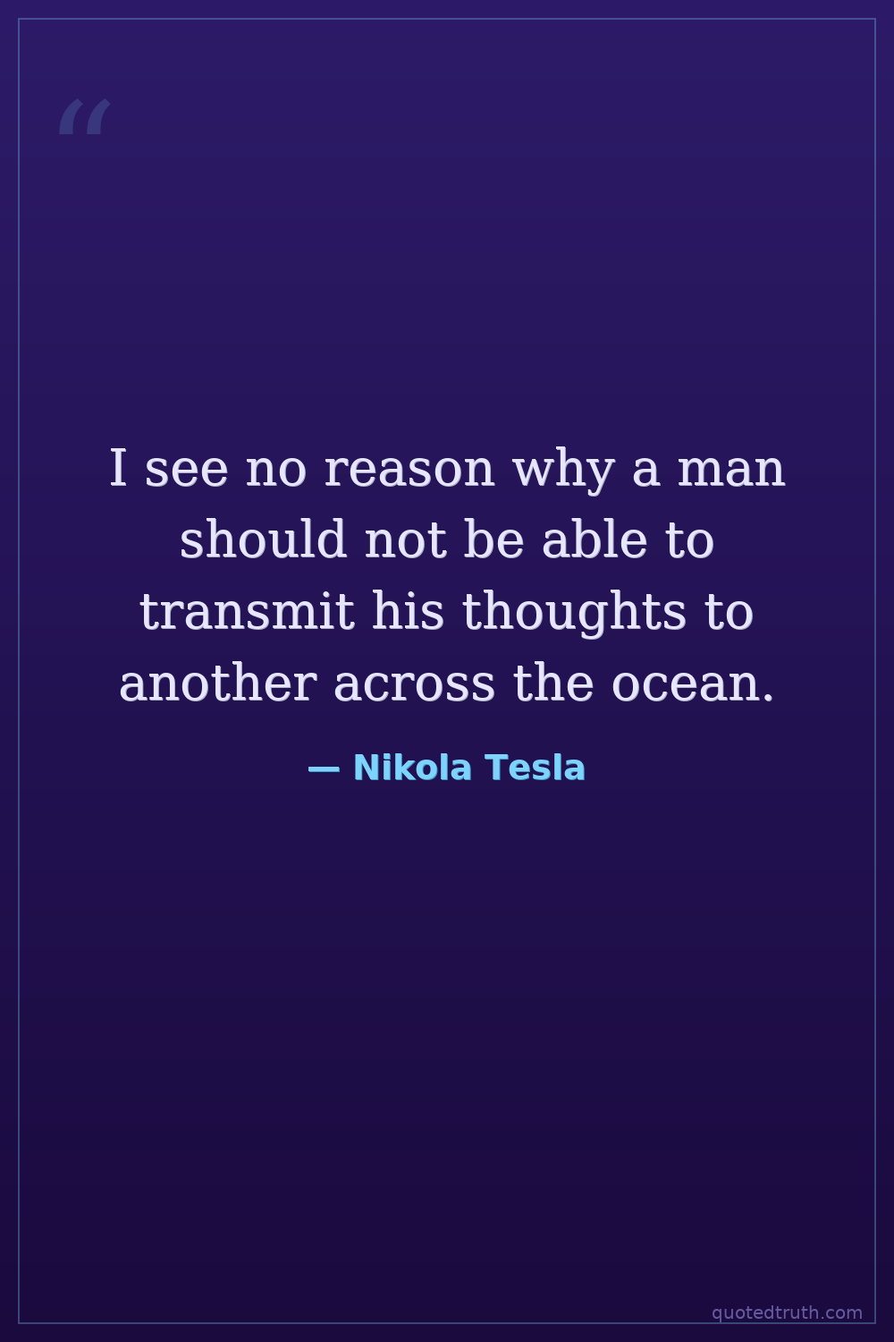 I see no reason why a man should not be able to transmit his thoughts to another across the ocean.