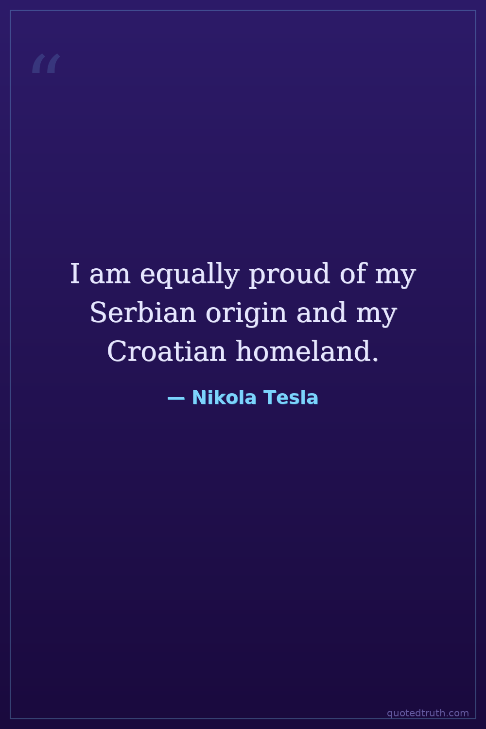 I am equally proud of my Serbian origin and my Croatian homeland.