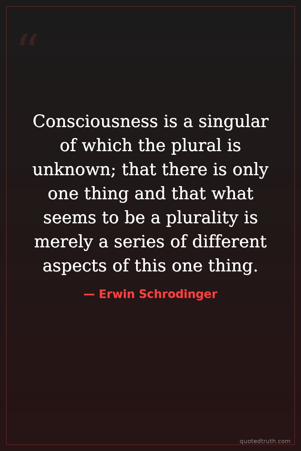 Consciousness is a singular of which the plural is unknown; that there is only one thing and that what seems to be a plurality is merely a series of different aspects of this one thing.