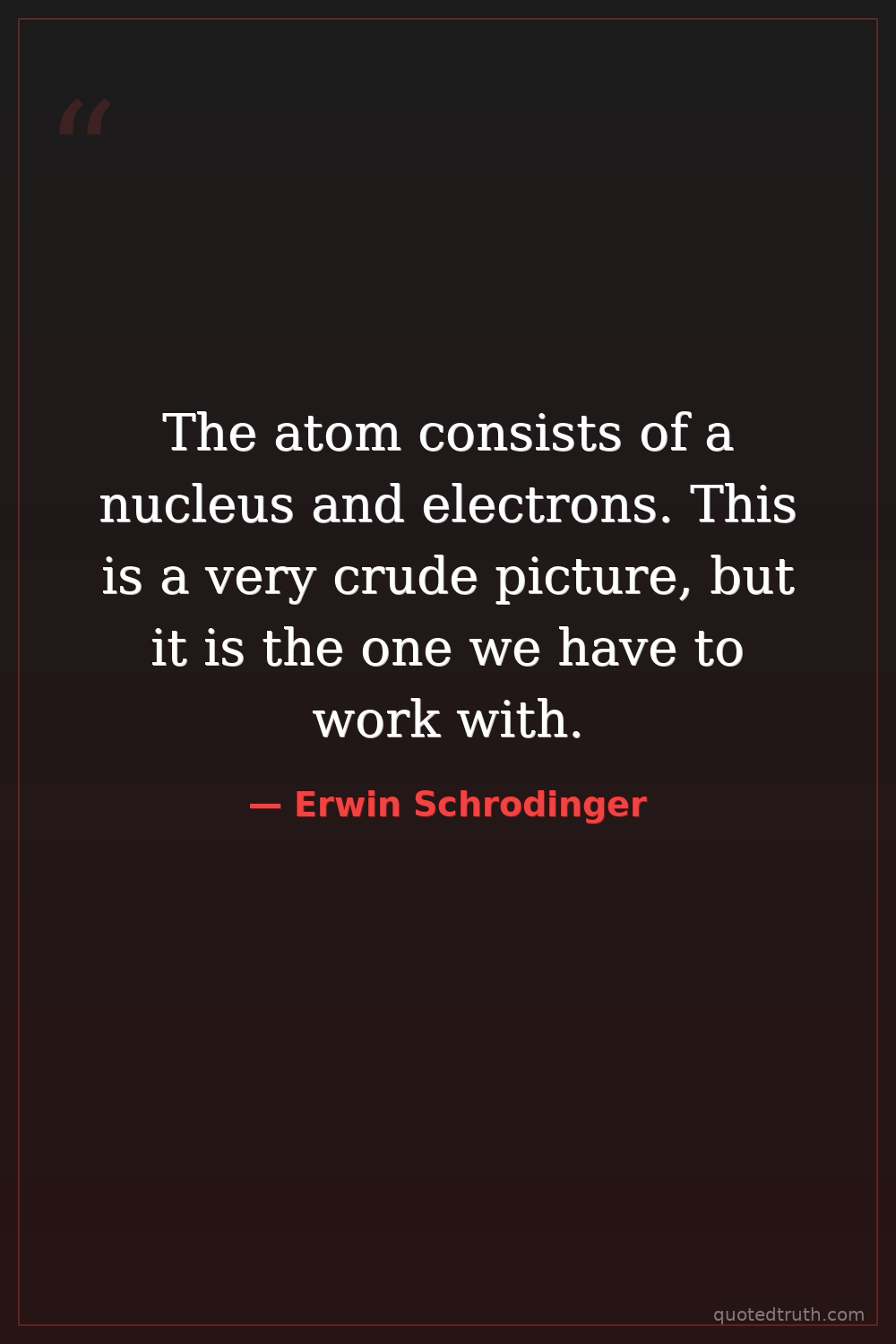 The atom consists of a nucleus and electrons. This is a very crude picture, but it is the one we have to work with.