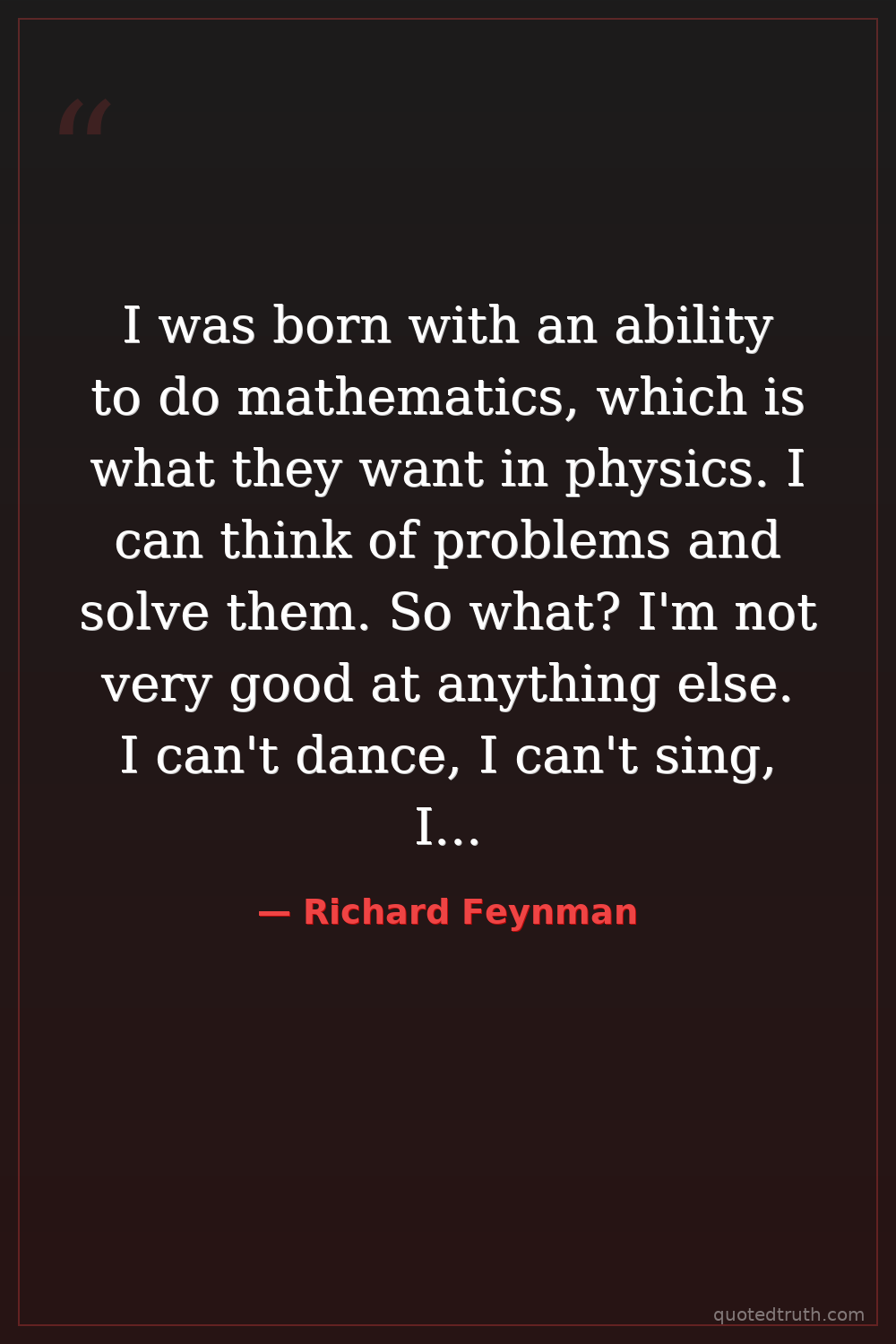I was born with an ability to do mathematics, which is what they want in physics. I can think of problems and solve them. So what? I'm not very good at anything else. I can't dance, I can't sing, I can't tell jokes very well, I'm not a good administrator, I can't do anything else. I'm just a physicist.