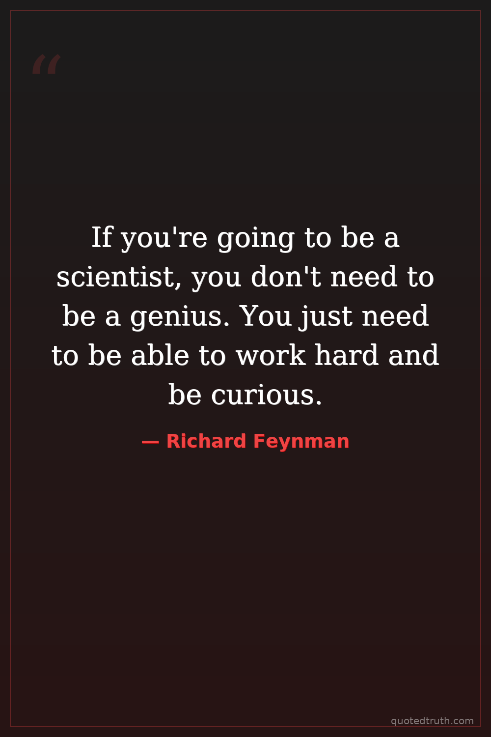 If you're going to be a scientist, you don't need to be a genius. You just need to be able to work hard and be curious.