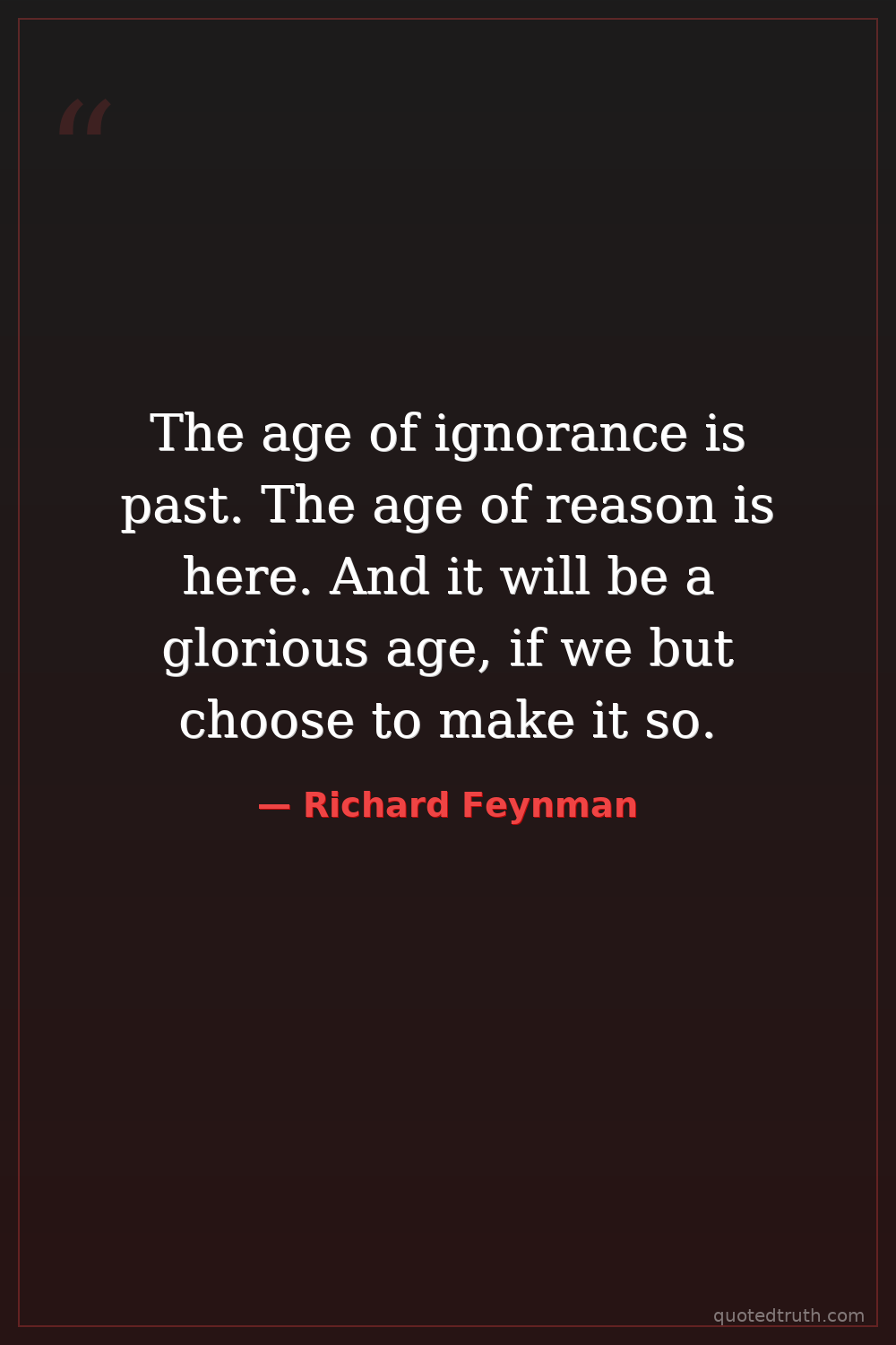 The age of ignorance is past. The age of reason is here. And it will be a glorious age, if we but choose to make it so.